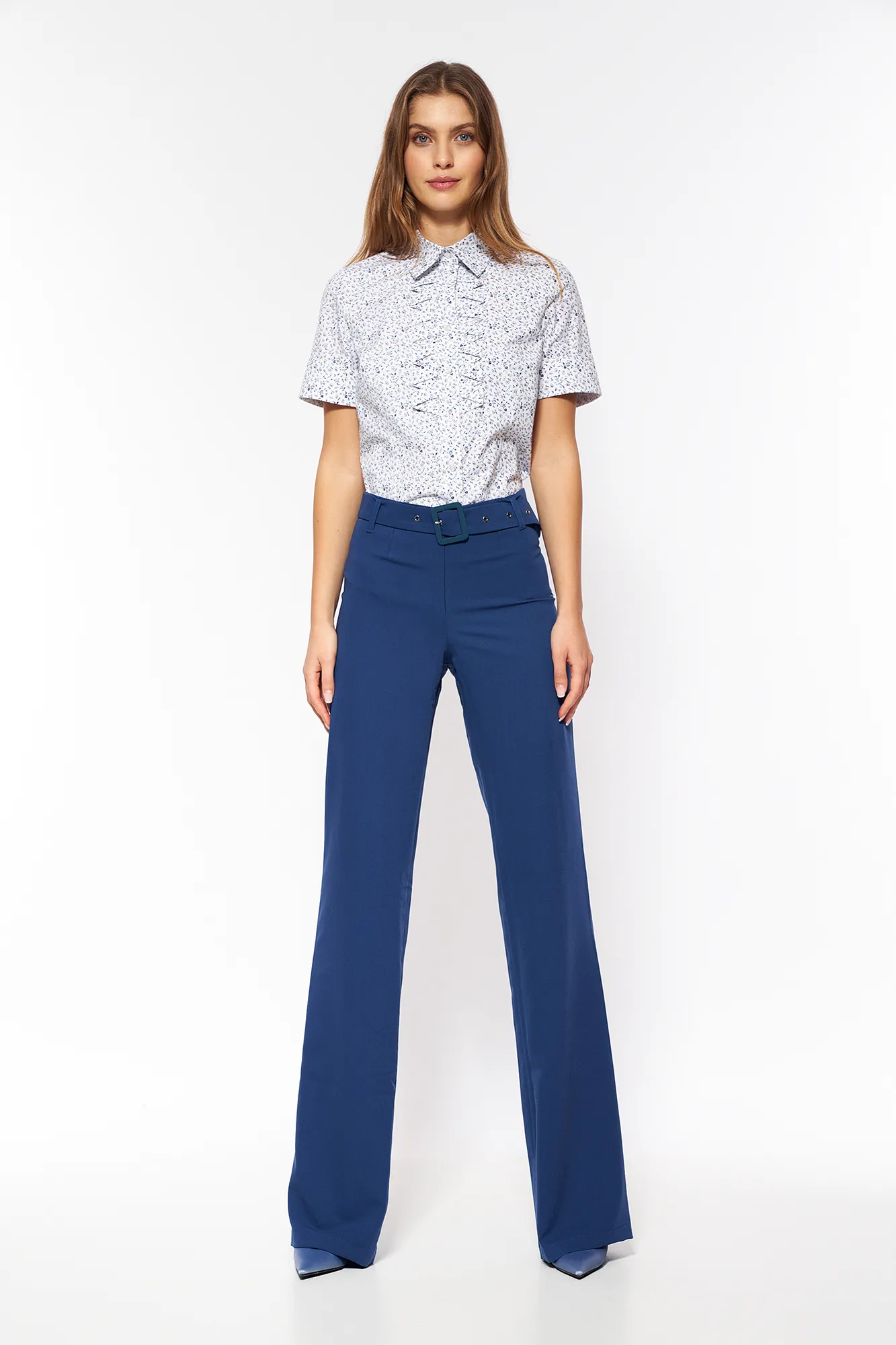 Woman's trouserswitharaisedwaistandanextendedlegisamodelthatwillnevergooutoffashion,itwillalwaysreignintrends,onlyindifferentcombinations.Incombinationwithapin,youwillopticallyslimandlengthenyourlegs.Theywillalsolookgoodwithaloosesweaterandaflatshoe.Aclassicforwhichyou will definitelyfindaplaceinyourwardrobe!