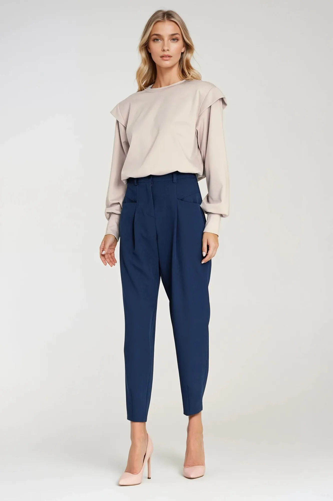 Oversize fit. Round neckline. Long sleeve with shoulder extension. Finished with long bottom cuff. Shoulder pads. Pullover style. High bottom ribbing.