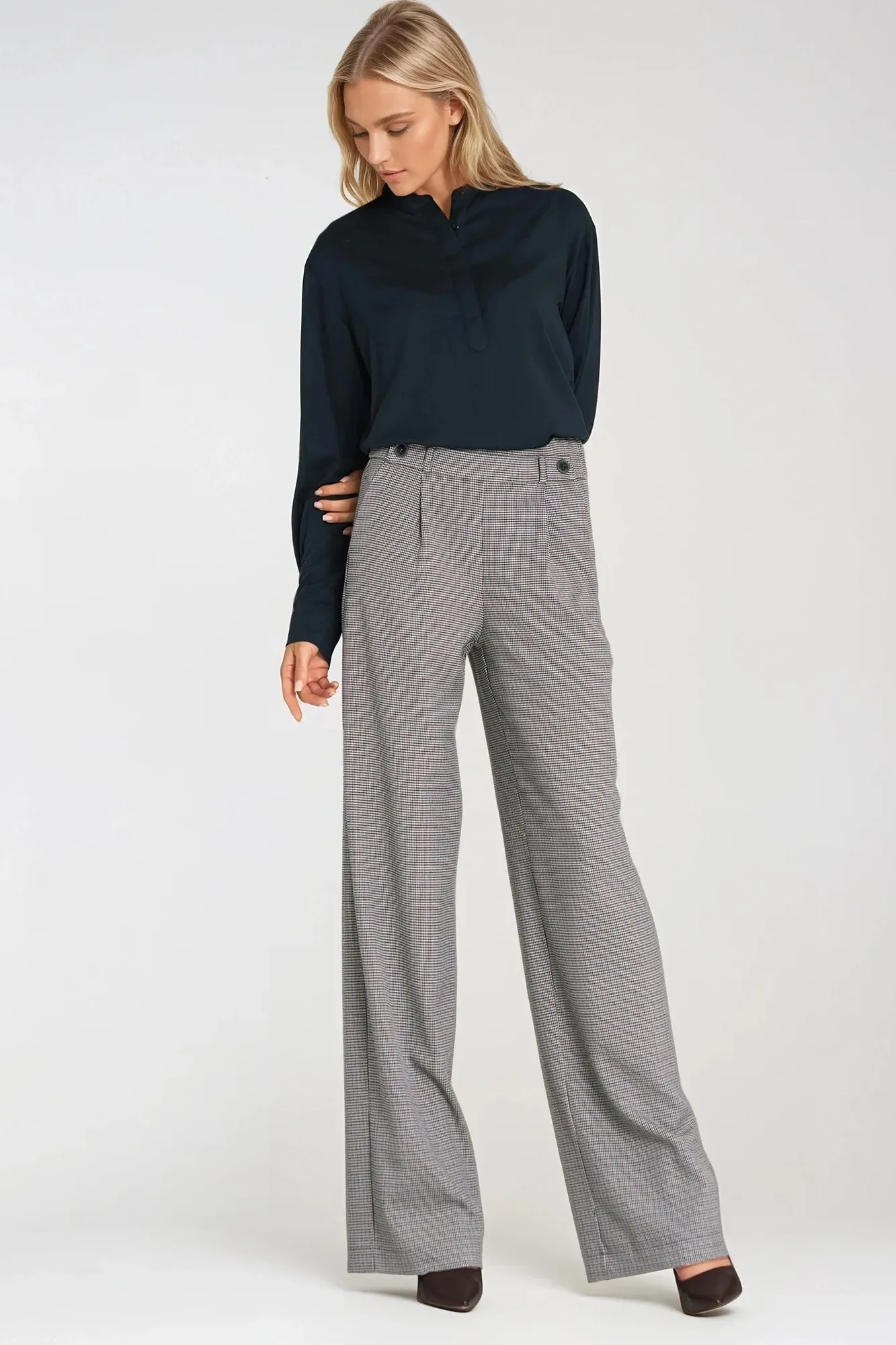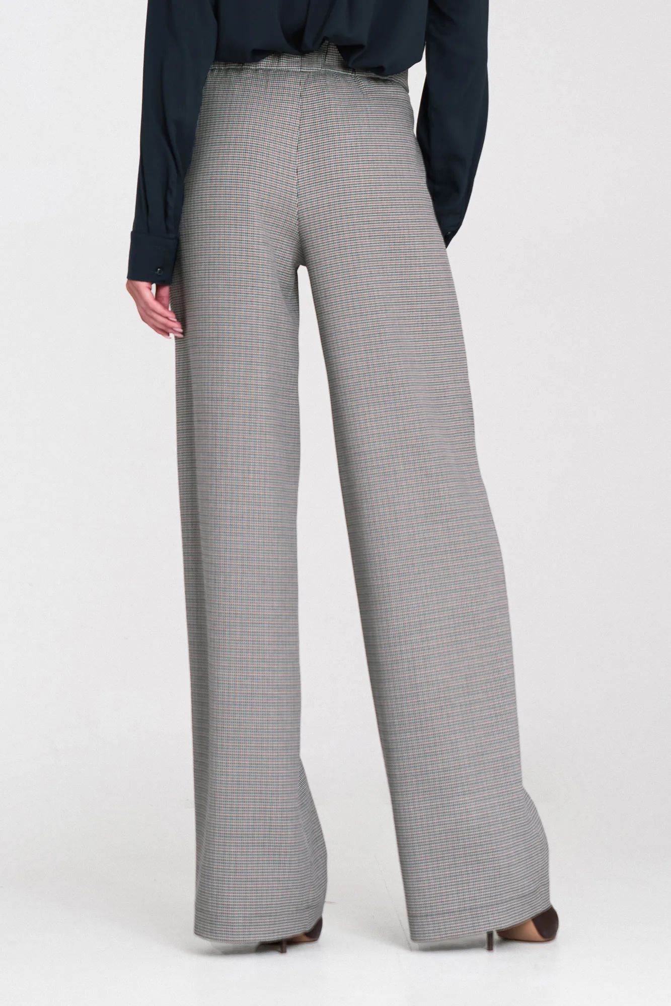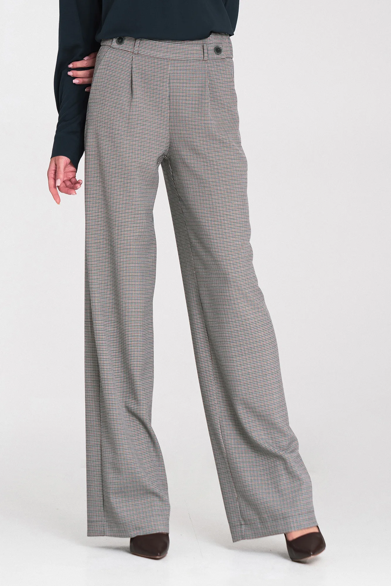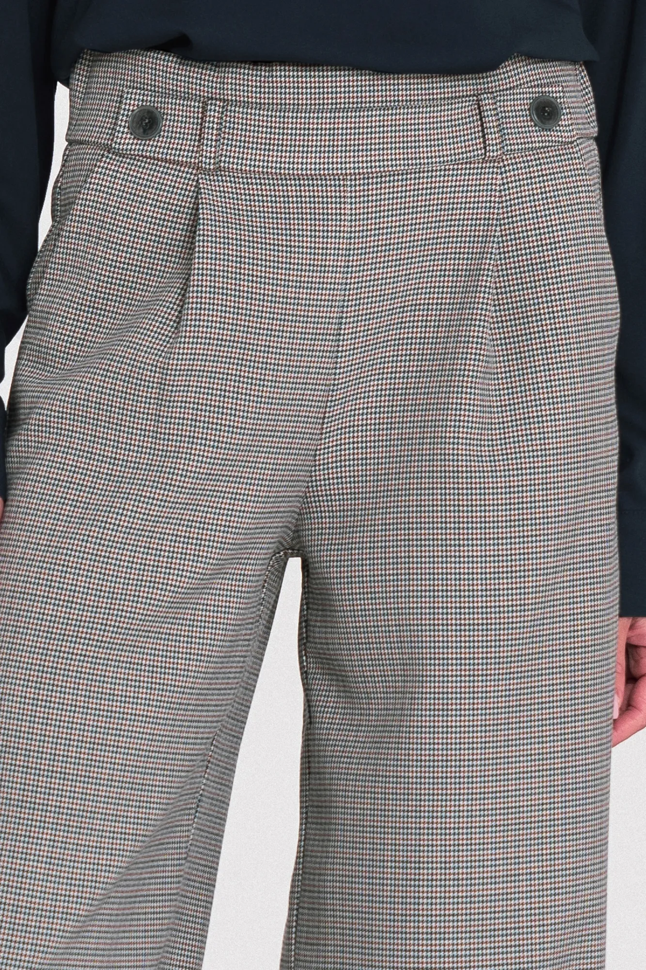 Wide leg trousers with elastic waist and buttons - houndstooth